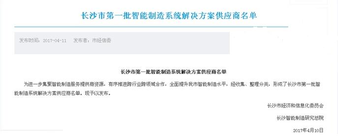 晗光智能被选为长沙市第一批智能制造系统解决方案供应商(附:长沙市第一批智能制造系统解决方案供应商名单发布)
