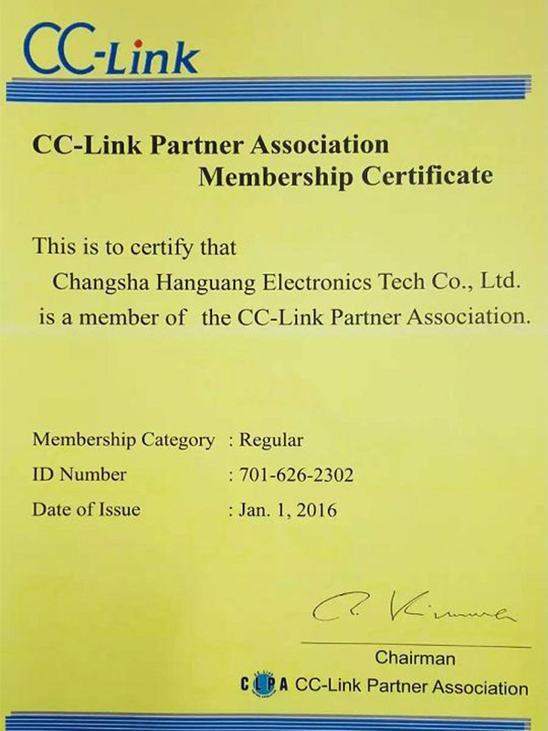 晗光公司成为CC-Link(控制与通信网络)协会成员
